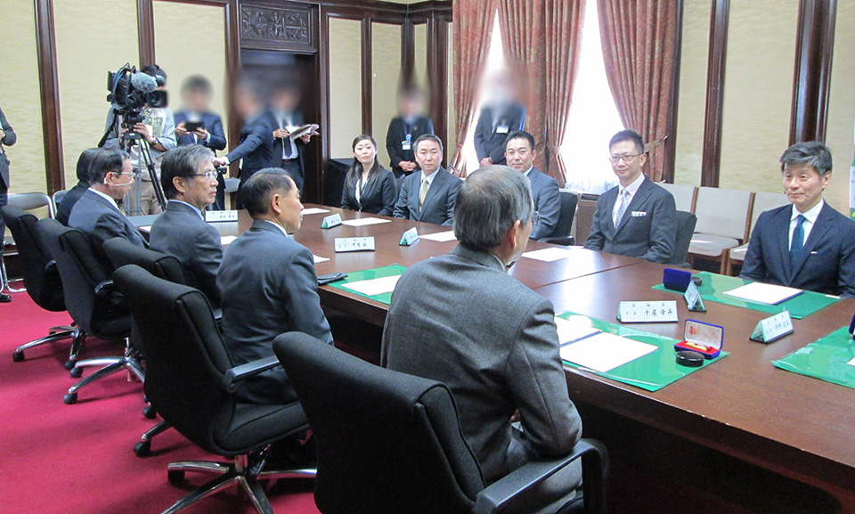 調印式は、県庁舎特別室にて、報道各社に囲まれる中、厳粛な空気のなかにも、宮崎県知事、日向市長、弊社代表とが、これからの展望についての熱い思いに、言葉に力がこもる場面もありました。